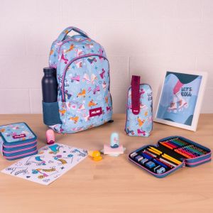Chceš byť Cool? Predstavujeme Vám jedinečné dizajny kolekcie POP School. • moderný dizajn, polyesterový odolný materiál • dva predné nastaviteľné popruhy, na spodnej časti • horná rukoväť, plne lemovaná a pohodlné popruhy • jedna hlavná priehradka a predná kapsa na zips • objem 23 L
