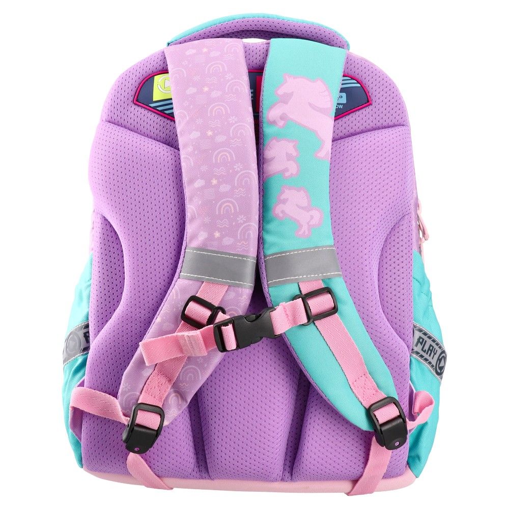 Školský batoh Dexter Play, Flower: • moderný dizajn, držiak na skateboard • anatomicky tvarovaný chrbát pre jednoduchú cirkuláciu vzduchu • dva predné nastaviteľné popruhy, zadný nastaviteľný pás s plastovou sponou • dve horné rukoväte, plne lemované a pohodlné popruhy • reflexné pásy, ktoré zvyšujú viditeľnosť a bezpečnosť v noci • vnútorná priečka s jednou veľkou kapsou a elastickou gumou • dve bočné elastické vrecká • silné a stabilné dno • Hmotnosť: 920 g. Objem: 38 L.