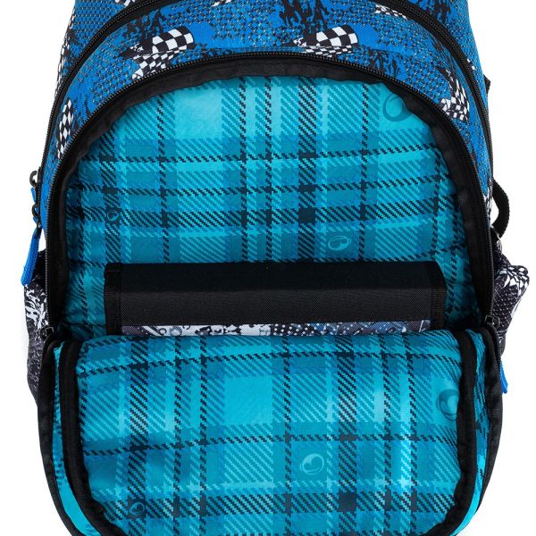 - Hlavná komora je spracovaná tak, aby sa do nej pohodlne vošli školské dosky (rozmery dosiek: 32 x 22,2 x 5 cm), zošity veľkosti A4 alebo ťažšie učebnice