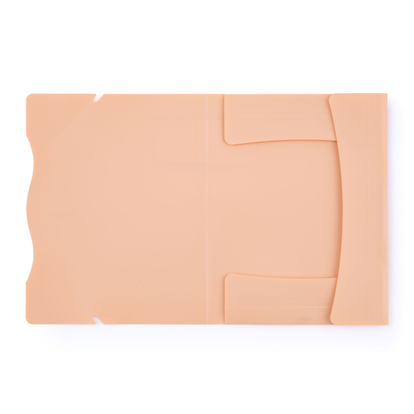Zakladací obal na dokumenty formátu A4 s tromi chlopňami a gumičkou. Obal je vyrobený z nepriehľadného PP materiálu.