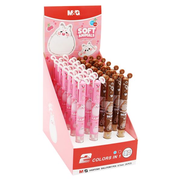 Pero guľôčkové M&G 0,7 mm Soft Animals 2-farebné (modrá a červená náplň)