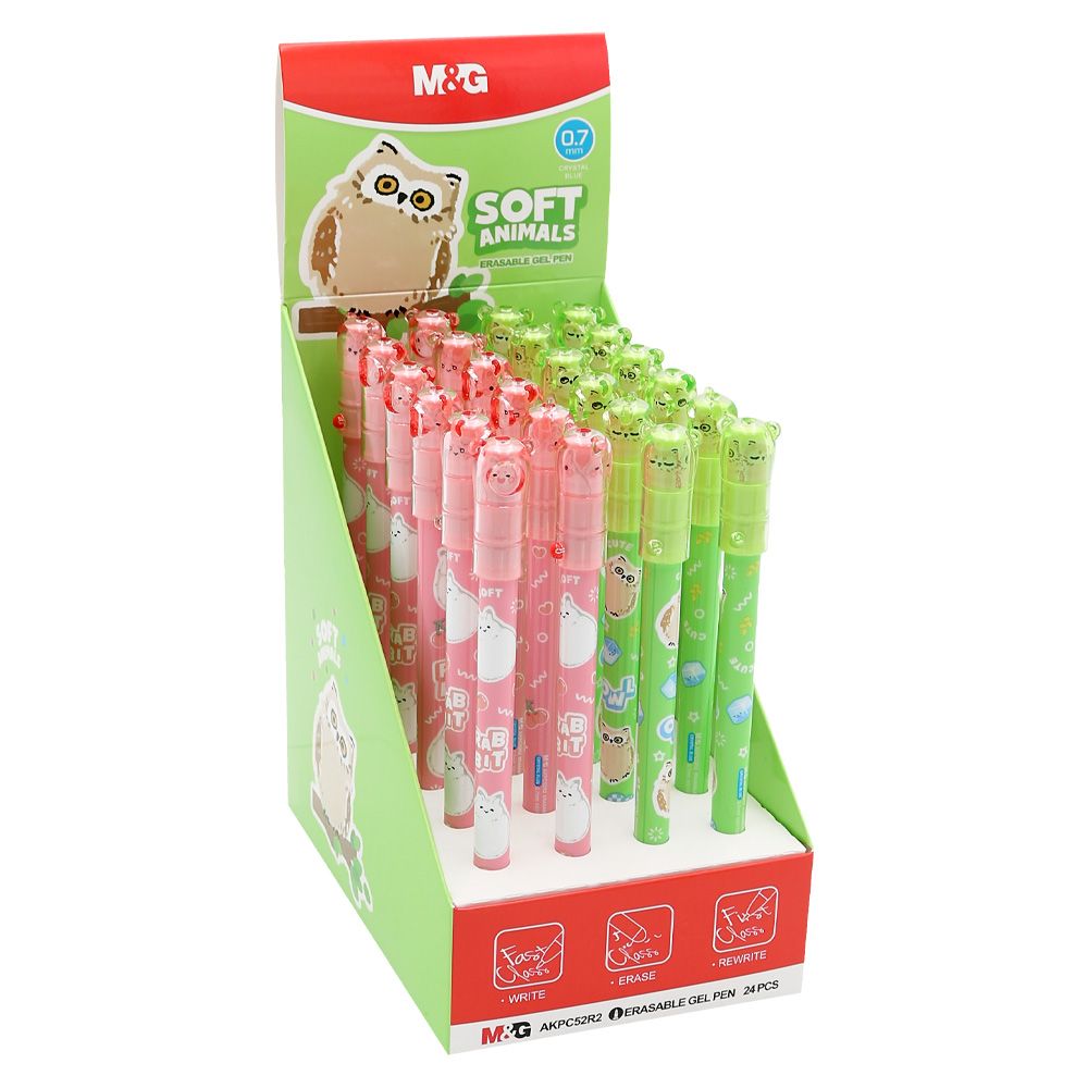 Roller gélový/gumovací M&G iErase Soft Animals - Sova (mix farieb) - modrá náplň
