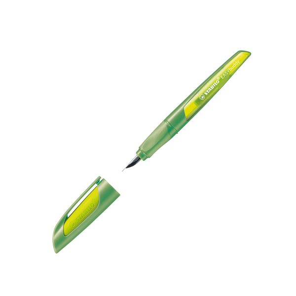 Ergonomické univerzálne plniace pero EASYbuddy lime/green M - pre ľavákov a pravákov, kvalitný hrot s irídiovou špičkou, opätovne naplniteľný štandardnými bombičkami, okienko pre kontrolu hladiny atramentu.