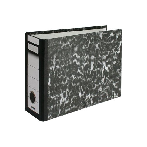 Poradač celopapierový s vonkajším mramorovým poťahom , s nalepeným chrbtovým štítkom. Chrbtový krúžok má kovové lemovanie . Poradač nemá ochranné lišty. Papier a lepenka vyrobená zo 100% recyklovaných vlákien. Po použití je výrobok 100% recyklovateľný. Rozmer: boky 49,5 + 49,5 cm, chrbát 8 cm, výška 32 cm.