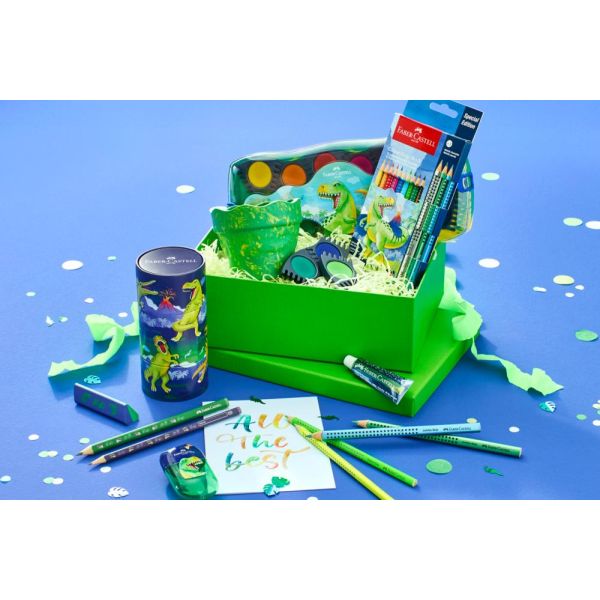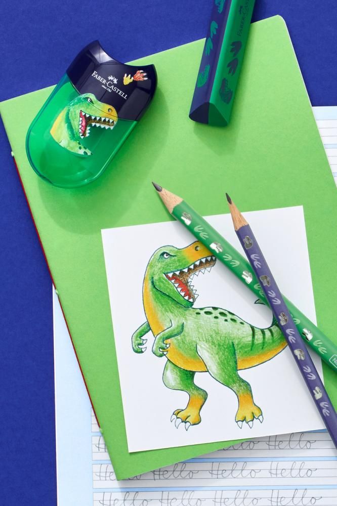 Ergonomická trojhranná guma pre čisté gumovanie. Atraktívna dvojfarebná kombinácia s motívmi dinosaurov. Bez PVC, bezprašná