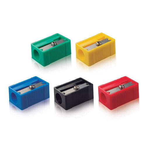 Jednoduché plastové strúhadlo vyrobené z PVC, obdĺžnikového tvaru, s oceľovou čepeľou na klasické ceruzky. Dodávané v rôznych farbách.