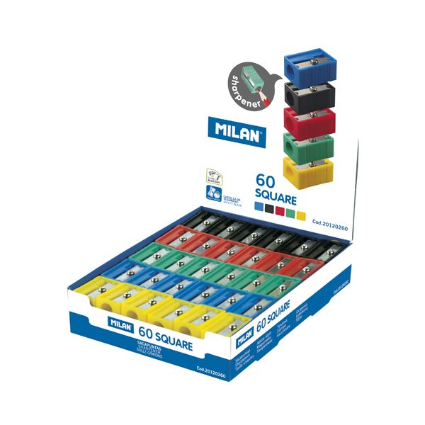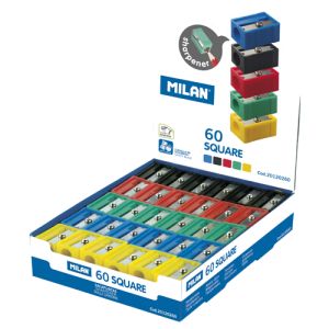 Jednoduché MILAN plastové strúhadlo v klasickom obdĺžnikovom tvare. Vybavené čepeľou z uhlíkovej ocele, ostré a odolné. Ideálne pre grafitové ceruzky a farebné ceruzky. V ponuke v 5 farbách: zelená; modrá; žltá; červená; čierna.