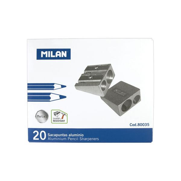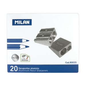 Dvojité hliníkové strúhadlo, s odolnou a ostrou čepeľou z uhlíkovej ocele. Ideálne pre grafitové ceruzky a farebné ceruzky.