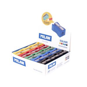 Jednoduché MILAN plastové strúhadlo v klasickom obdĺžnikovom tvare. Vybavené čepeľou z uhlíkovej ocele, ostré a odolné. Ideálne pre grafitové ceruzky a farebné ceruzky. V ponuke v 5 farbách: zelená; modrá; žltá; červená; čierna.