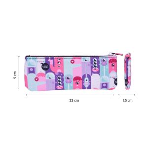Textilné puzdro na perá s aplikáciou na prednej strane, uzatváranie na zips. Dodávané v rôznych farebných prevedeniech a motívoch.