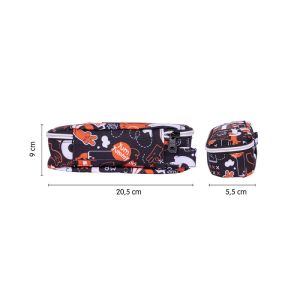 Puzdro na perá z textilného materiálu a modernou potlačou.Púzdro má uzatváranie na zips. Priemer válca je 80mm a dĺžka 235mm.