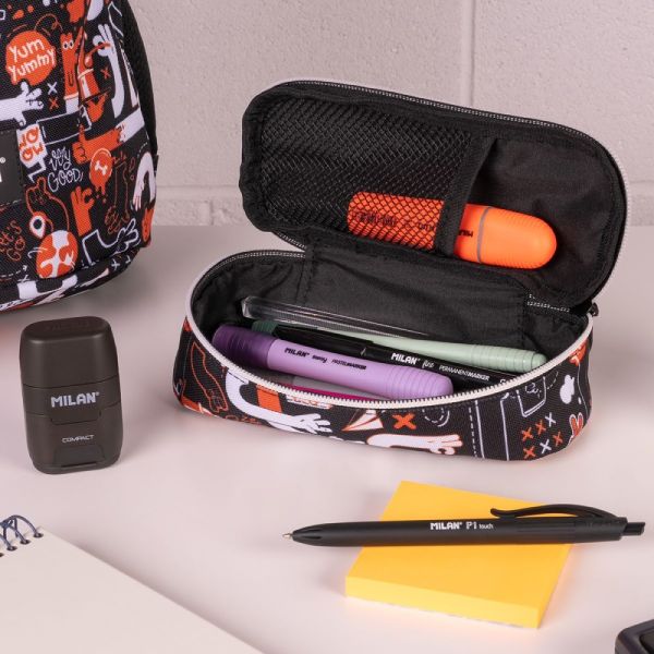 Školský oválny peračník s vnútorným sieťovaným vreckom.