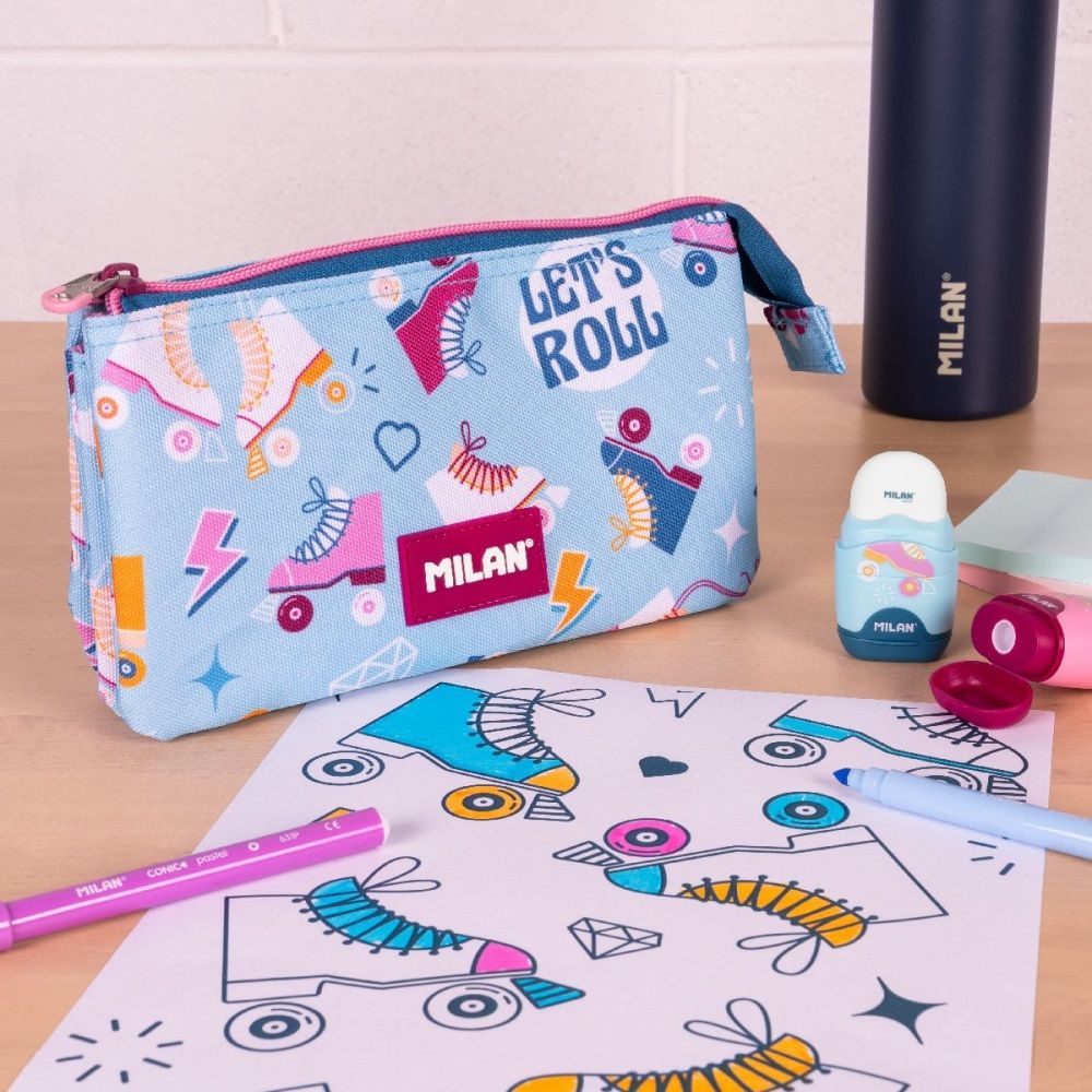 2-zipsový školský peračník s piatimi vreckami. Špeciálna séria kolekcia inšpirovaná retro 4-kolieskovými korčuľami. Zloženie látky: polyesterová vonkajšia tkanina a vnútorná podšívka.