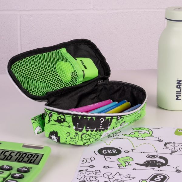 Školský oválny peračník s vnútorným sieťovaným vreckom.