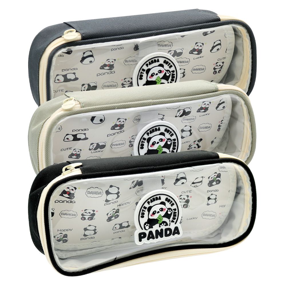 Puzdro na písacie potreby Panda s chlopňou a priehľadným vekom, prázdne (mix farieb)