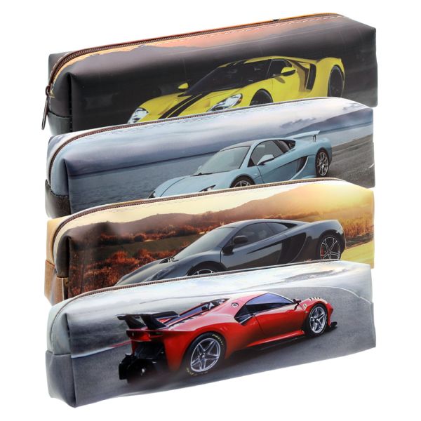 Ľahké puzdro pre chlapcov s potlačou rýchlych áut hravo pojme všetky potreby na písanie a kreslenie.
