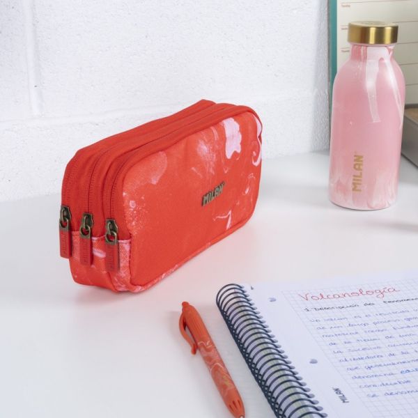 Puzdro na perá MILAN 3-zipsové, séria Lava - červený