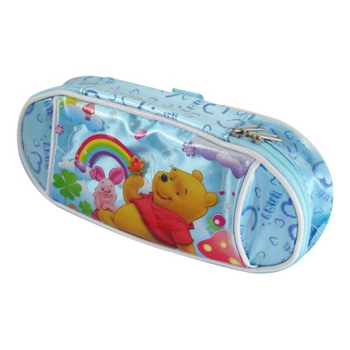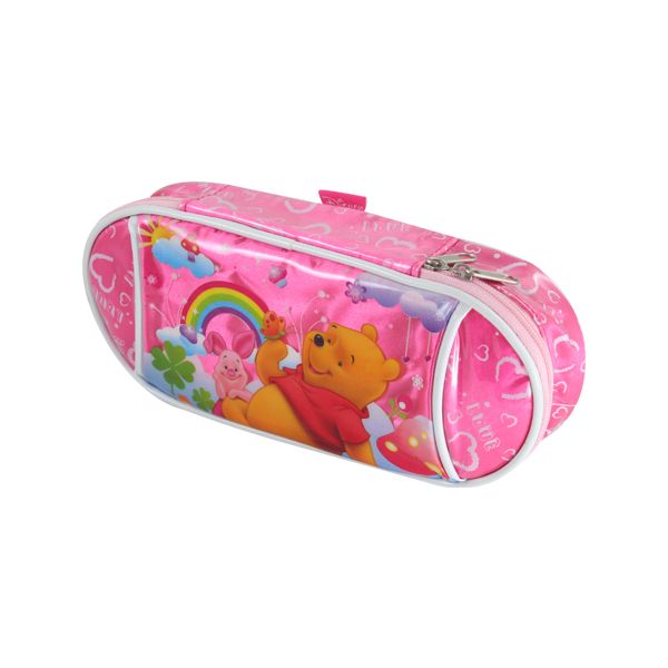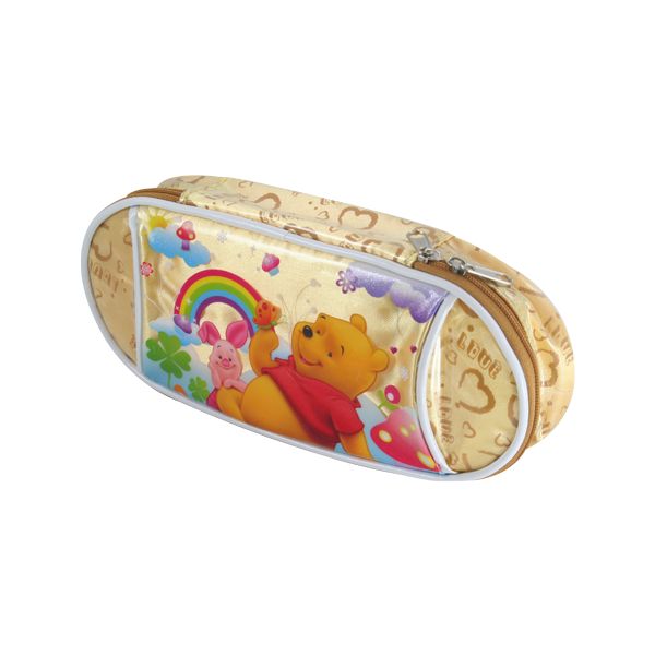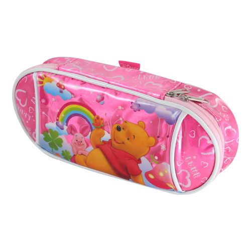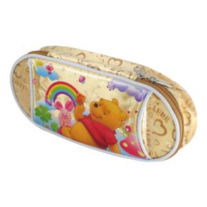 Praktické puzdro na perá v designe Macko Pú poteší najmä najmenších. Dodávané v troch farebných prevedeniach: modrá, ružová, žltá. Veľký hlavný priečinok so zapínaním na zips.