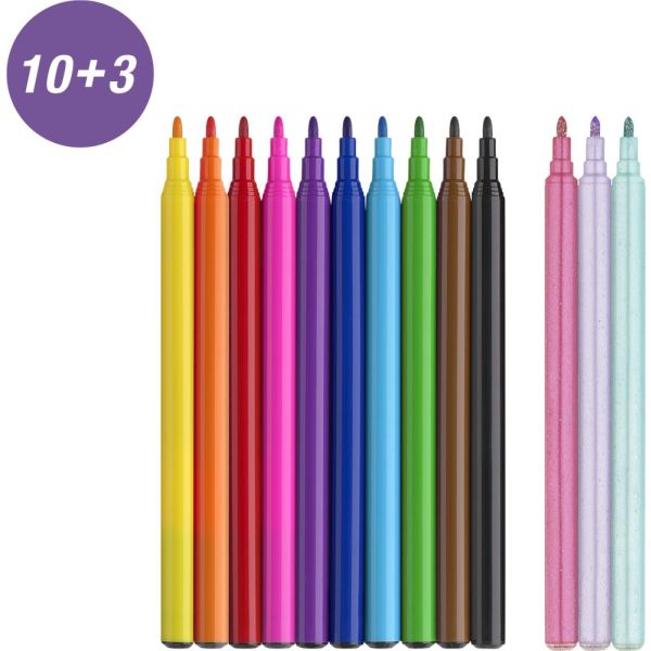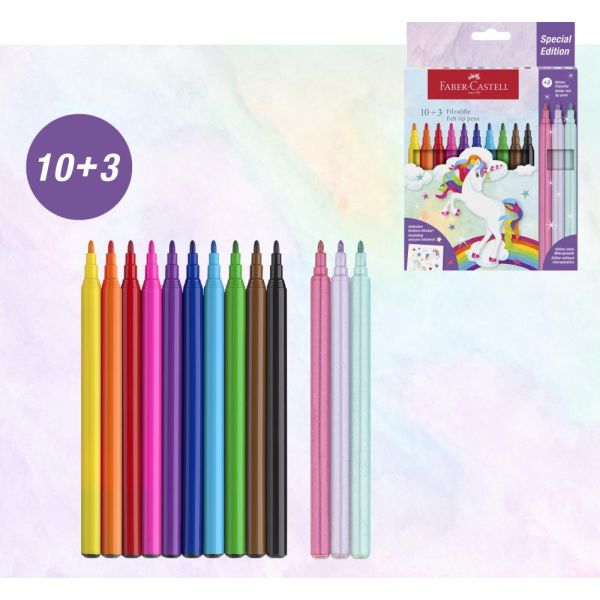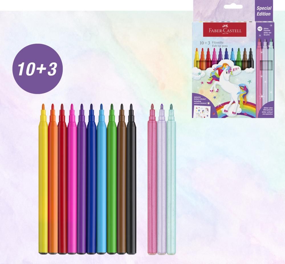 Fixky, sada, FABER-CASTELL "Jednorožec" 10 rôznych farieb + 3 trblietavé, 13ks