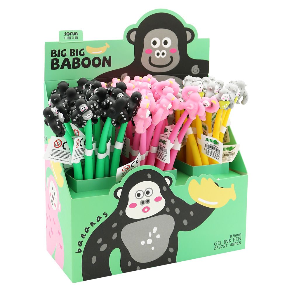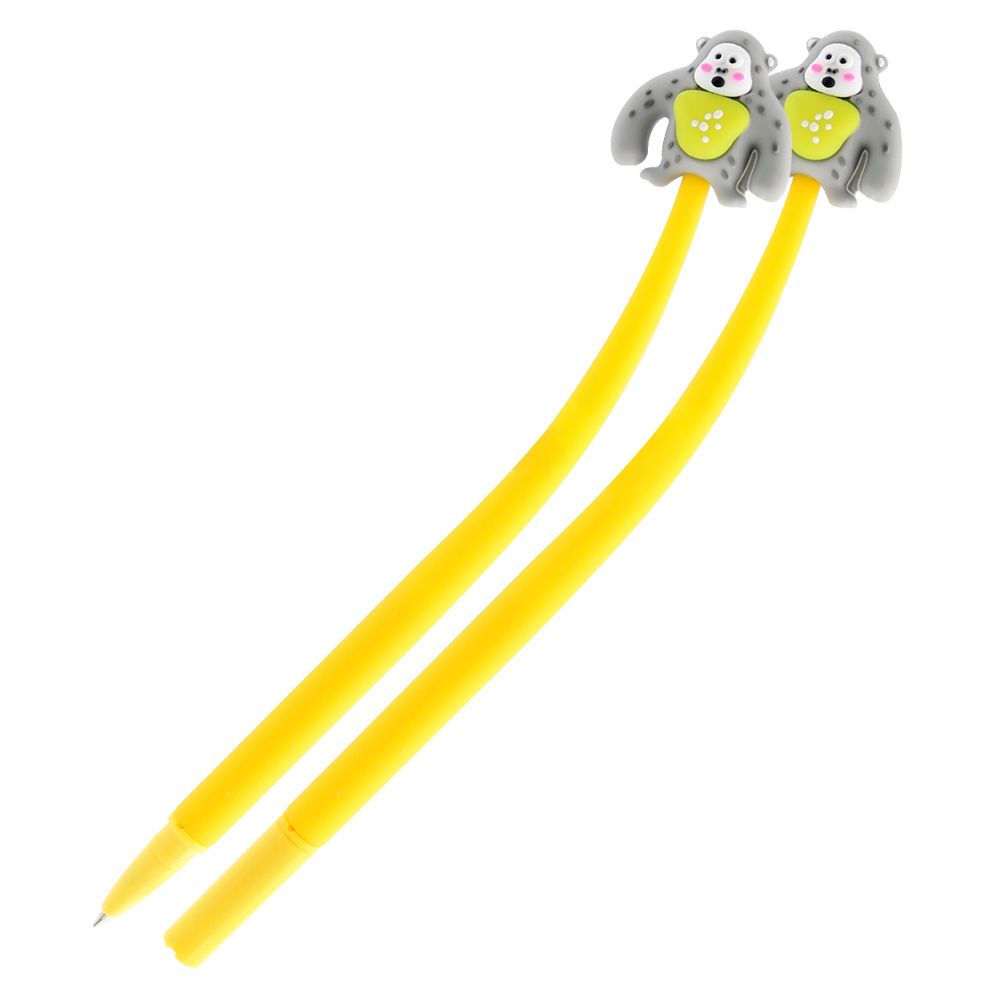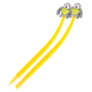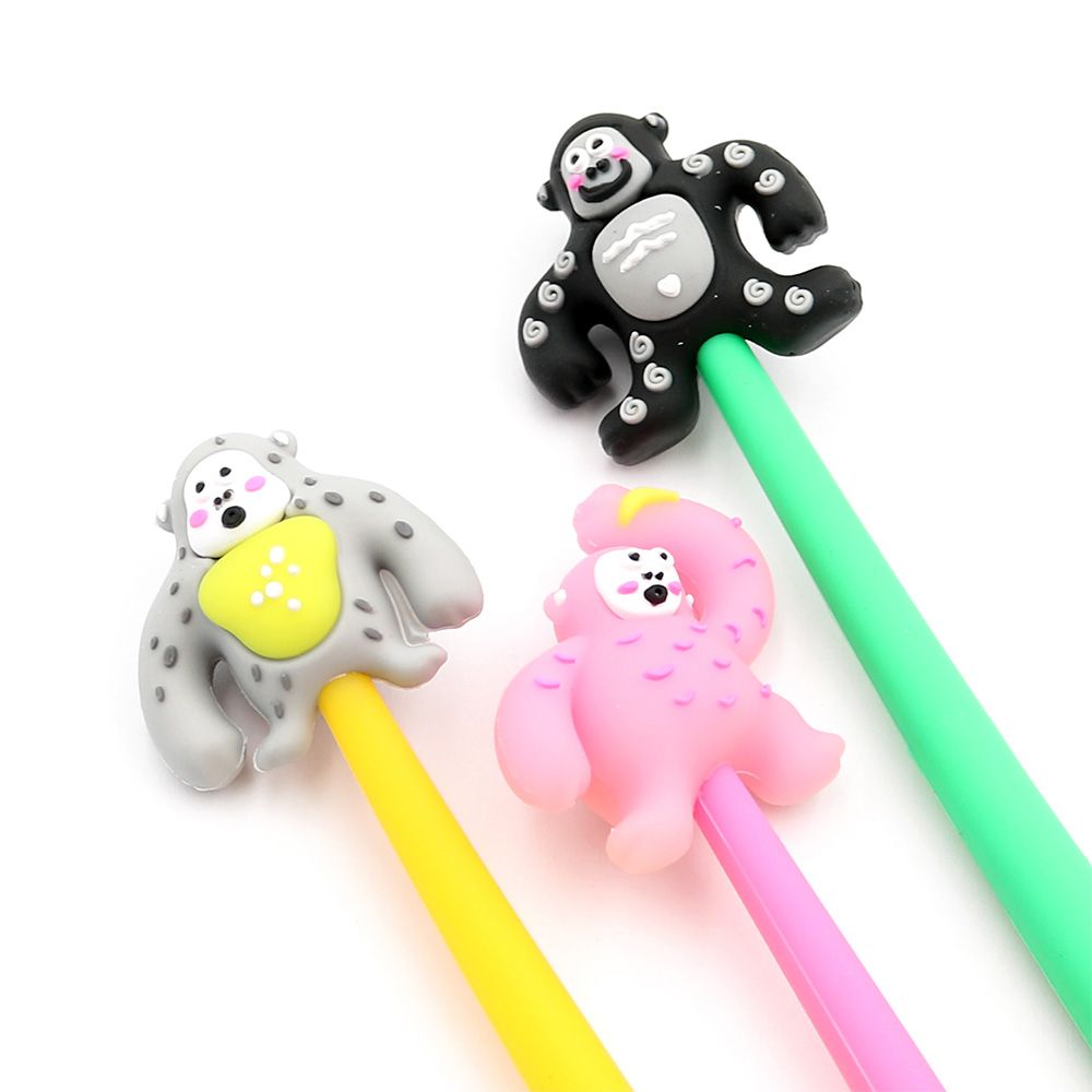 Dlhé gélové pero s gumenou figúrkou gorily na vrchnom, ohybnom konci (3 farby /3 dizajny).