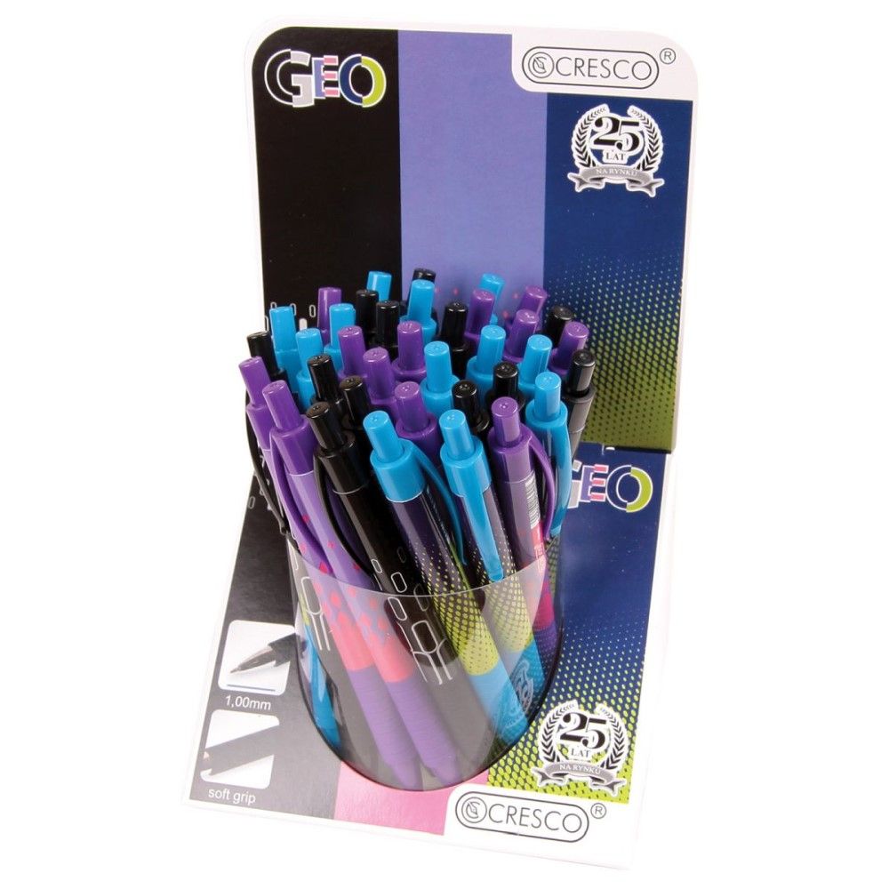Guľôčkové pero s plastovým telom a potlačou so série GEO v troch dizajnoch.