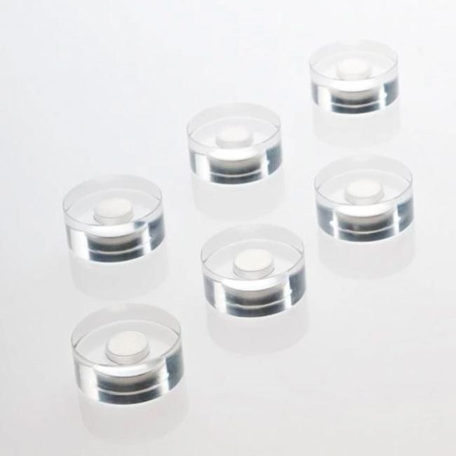 Dizajnový magnet Magnetoplan Acryl s neodymovým extra silným jadrom. Prídržná sila cca 2,5 kg. Priemer 25 mm. Hrúbka 11 mm. Známka ochrany priemyselného designu.