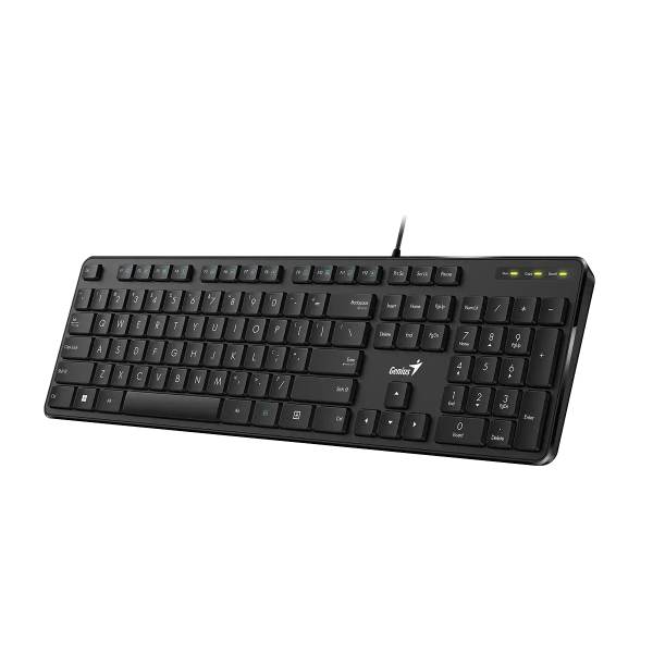 Genius Smart KB-100 Drátová klávesnica disponuje unikátnou aplikáciou SmartGenius. Klávesnica je vodeodolná a pripojenie k počítaču je realizované cez USB port * je vybavená samostatným klávesom pre vyvolanie AI asistenta Microsoft Copilot ZÁKLADNÁ ŠPECIFIKÁCIA Rozloženie kláves: československé Multimediálne klávesy: áno, sdílené s funkčnými tlačidlami Podsvietenie: nie Dĺžka kábla: 1,5 m Pripojenie: USB Farba: čierna Rozmery: 440,51 × 139,67 × 20,07 mm Hmotnosť: 450 g