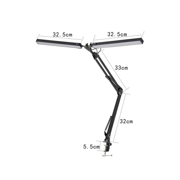 Lampa je vybavená dvoma samostatnými ramenami, z ktorých každé je zakončené 35 cm dlhým svetelným panelom. Ramená sú plne nastaviteľné vďaka siedmim kĺbovým spojom, čo umožňuje dokonalé nasmerovanie svetla podľa aktuálnej potreby – či už pracujete, vytvárate, alebo čítate.