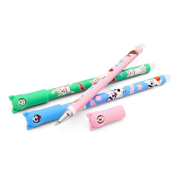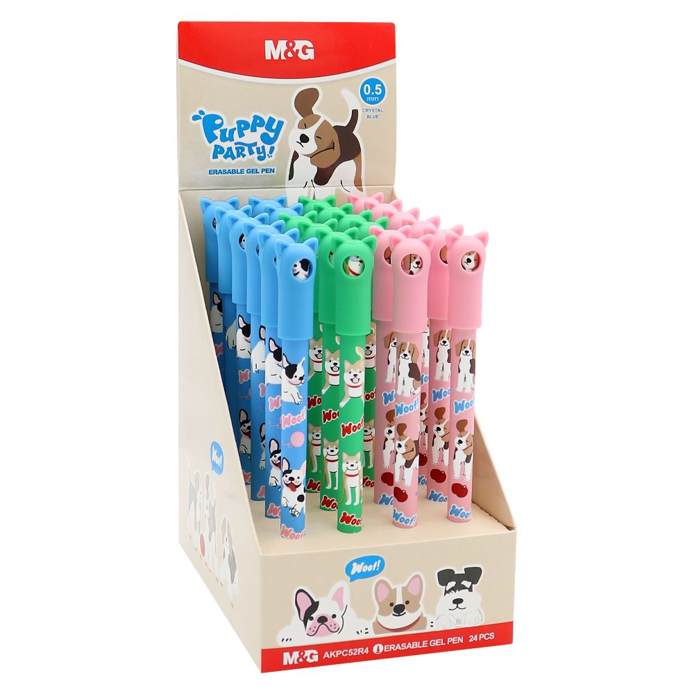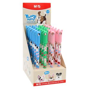 Gumovací roller od značky M&G s motívom psíkov v štyroch farebných variantách. Na vrchnáku pera je guma, aby ste mohli opraviť chyby. Nie je vhodné na oficiálne dokumenty. Stopa hrotu je 0,5 mm. Vymeniteľná náplň: 530031 Cena je za 1 kus.