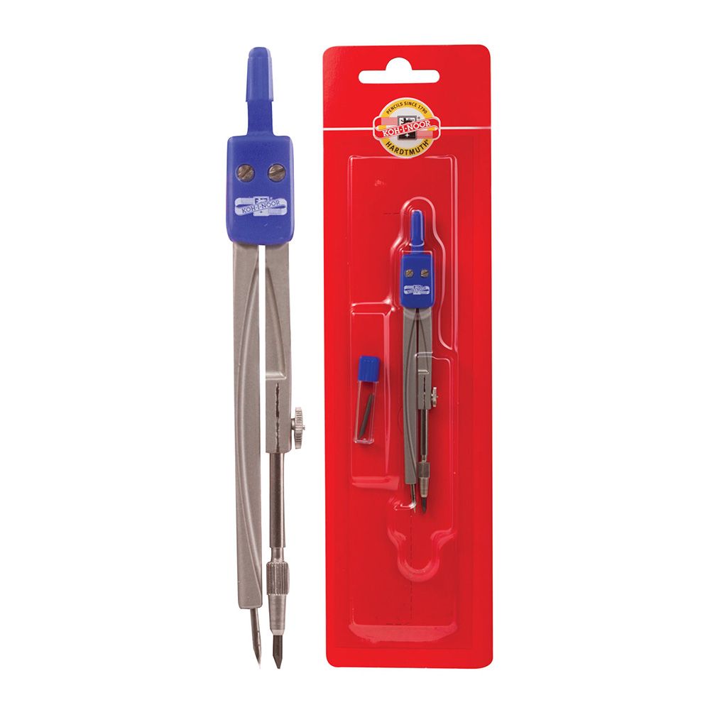 Školské kovové kružidlo s ohybným ramenom, s čiernym plastovým úchytom. Súčasťou balenia je náhradná tuha. Celý set je balený v praktickej plastovej krabičke.