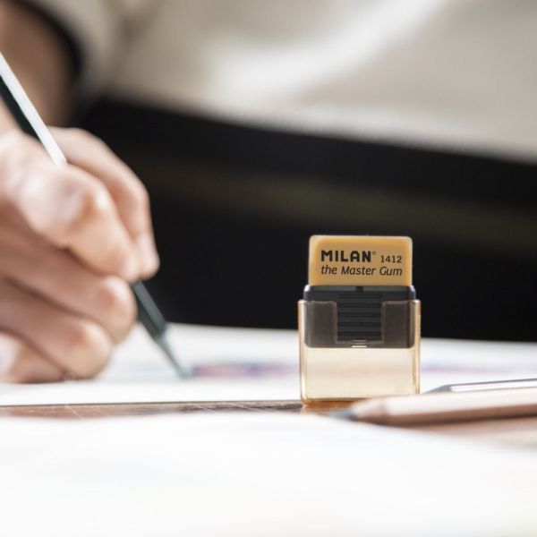 Obdĺžniková guma MILAN 445 z mäkkej syntetickej gumy. Môže byť použitá na gumovanie širokej škály ťahov grafitovej ceruzky zo všetkých druhov papiera. S detským dizajnom v rôznych farbách: biela, ružová, zelená.