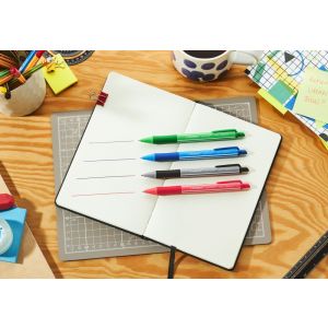 Guľôčkové pero s plastovým telom a ergonomicky tvarovaným gumovým úchopom. Priemer hrotu je 0.7 mm. Dodávané vo farbách: modrá, žltá, červená, biela. Náplň modrá. Jednorazová náplň.