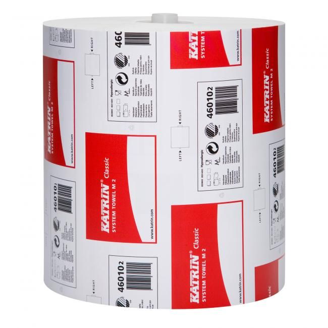 Papierové utierky v rolke 2-vrstvové KATRIN Plus System, biele, návin 150 m, celulóza, 6 ks