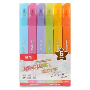 Zvýrazňovač M&G HI-CUBE Glitter - sada 6 ks jasných farieb