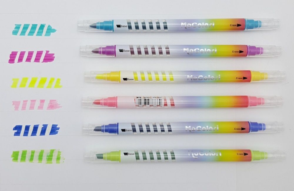 Sada zvýrazňovačov so zmizíkom spolu s predajným stojanom (6 farieb).