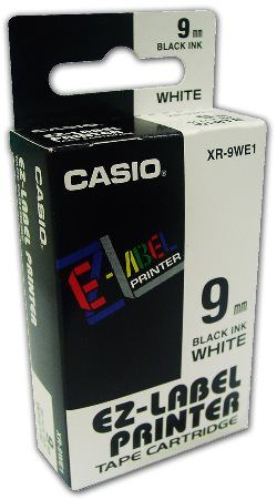 Páska do štítkovača Casio XR-9WE1, 8m, 9mm, čierna tlač / biely podklad, originál