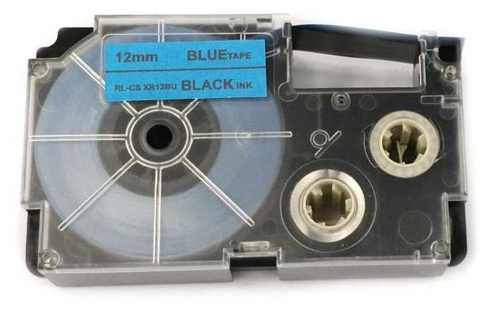 Páska do štítkovača Casio XR-12BU1, 8m, 12mm, čierna tlač / modrý podklad, alternatívna