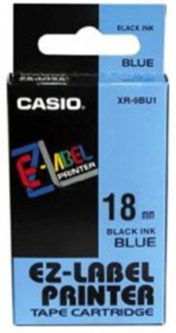 Páska do štítkovača Casio XR-18BU1, 8m, 18mm, čierna tlač / modrý podklad, originál