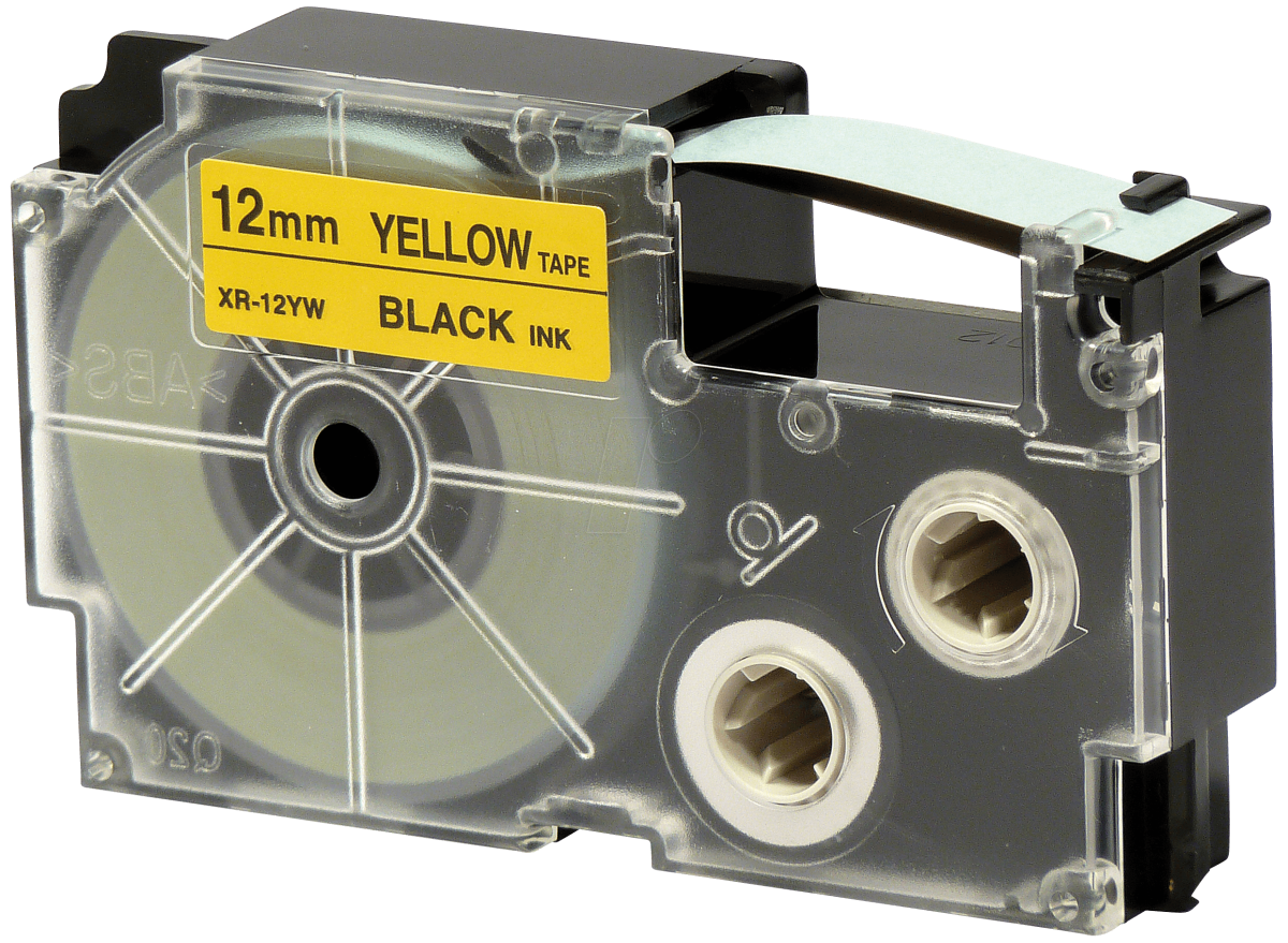 Páska do štítkovača Casio XR-12YW1, 8m, 12mm, čierna tlač / žltý podklad, alternatívna