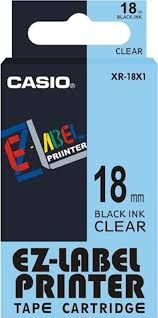 Páska do štítkovača Casio XR-18X1, 8m, 18mm, čierna tlač / priehľadný podklad, originál
