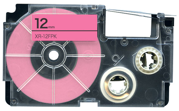 Prémiová páska Casio XR-12FPK, 8m, 12mm, fluorescent vo farbe čierna tlač / ružový podklad poskytuje vynikajúcu kvalitu tlače, zvýšenú odolnosť a profesionálny vzhľad pre náročné aplikácie.