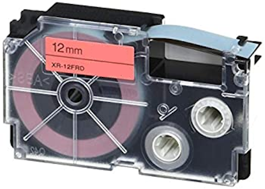 Páska do štítkovača Casio XR-12FRD, 8m, 12mm, fluorescent, čierna tlač / červený podklad, alternatívna
