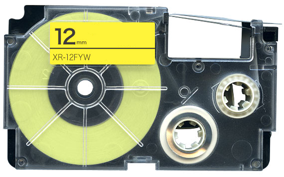 Prémiová páska Casio XR-12FYW, 8m, 12mm, fluorescent vo farbe čierna tlač / žltý podklad poskytuje vynikajúcu kvalitu tlače, zvýšenú odolnosť a profesionálny vzhľad pre náročné aplikácie.