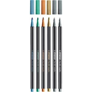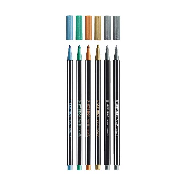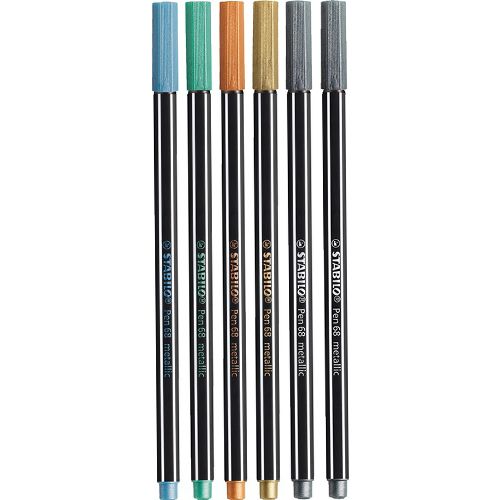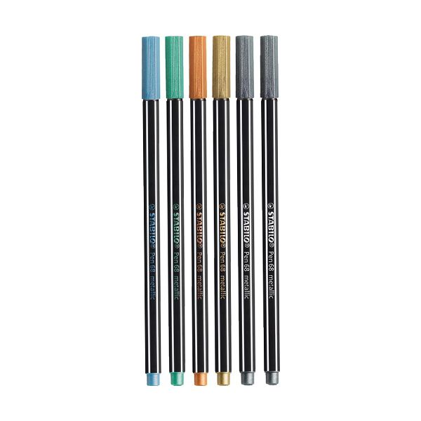 Fixy metalické vláknové STABILO Pen 68 metallic, sada 6 ks, kovové balenie závesné
