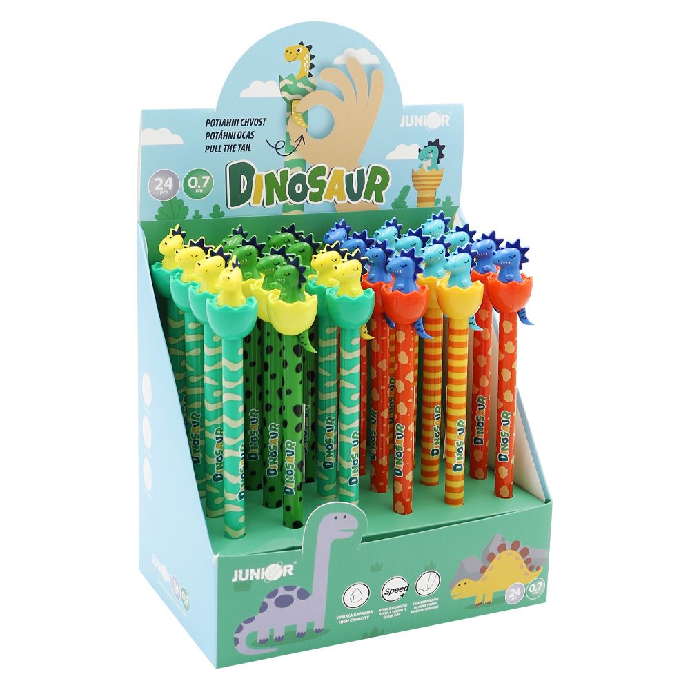 Pero gélové /gumovacie JUNIOR Dinosaur 0,7 mm (mix /cena 1ks) modrá náplň