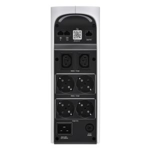 Výstupné prípojky: 4 × Schuko (s ochranou proti prepätiu), 2 × IEC 60320 C13