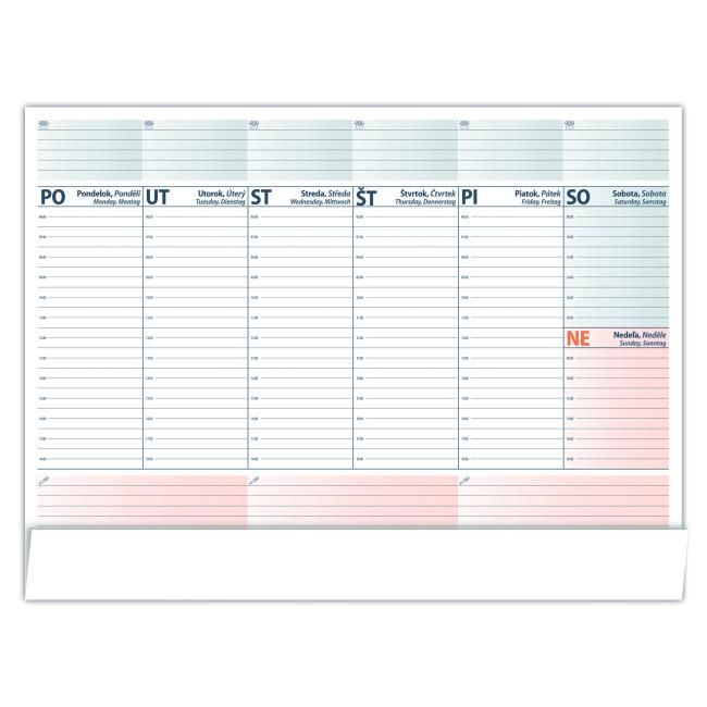 Univerzálna pracovná stolová podložka s týždenným plánovaním na akýkoľvek rok. Praktická pomôcka, ktorá chráni váš stôl a zároveň nahrádza kalendár, či poskytuje priestor na poznámky.