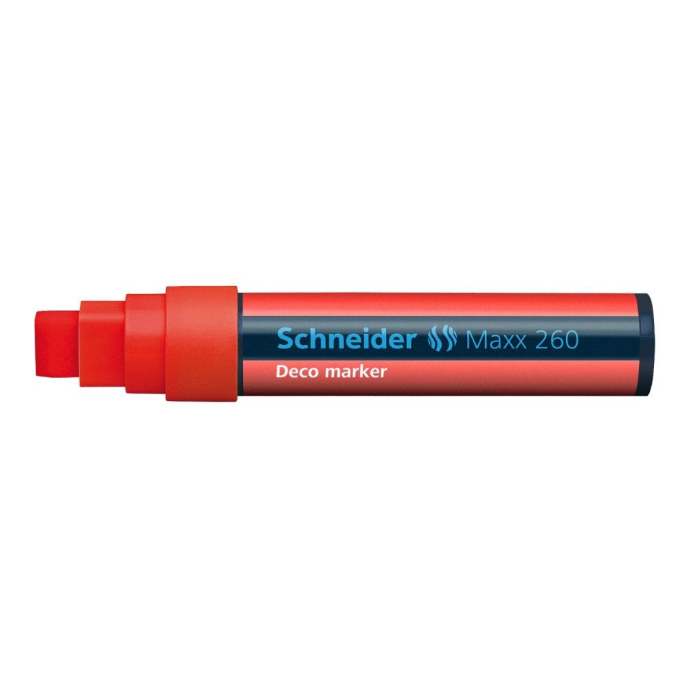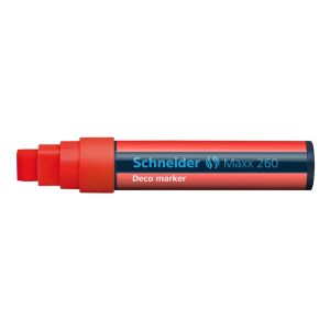 Popisovač pre hladké neporézne povrchy na sklo, čierne tabule, vodeodolné povrchy a kartón tmavej farby. Ľahko stierateľné. Klinový písací hrot strednej hrúbky. Plnený tekutou kriedou na báze vody. Zmazateľné za sucha i mokra. Sýte, žiarivé farby. Šírka stopy: 2-4 mm. Farba: červená.