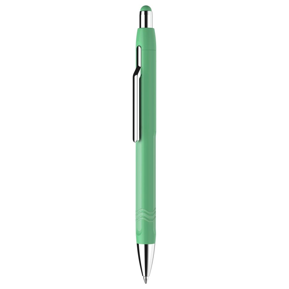 Guľôčkové pero s plastovým telom a ergonomicky tvarovaným gumovým úchopom. Priemer hrotu je 0.7 mm. Dodávané vo farbách: modrá, žltá, červená, biela. Náplň modrá. Jednorazová náplň.