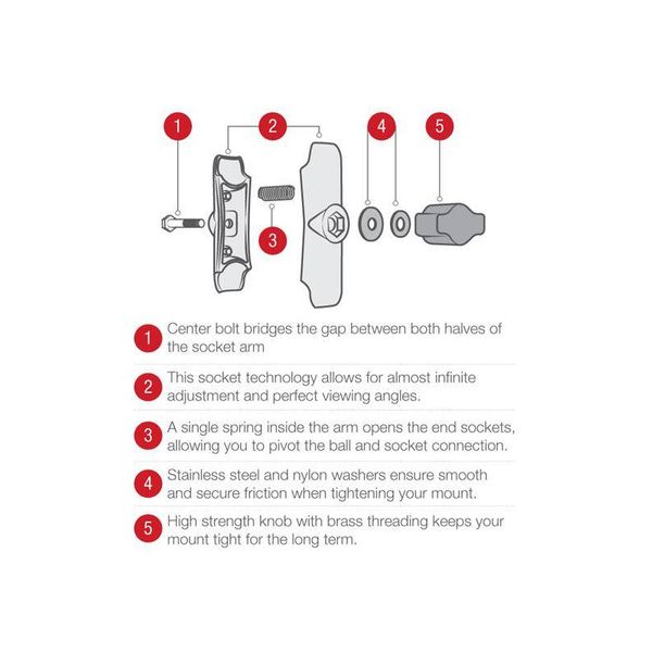 RAM-B-149Z-UN10U, ideálny pre riadidlá, sa skladá z pozinkovanej základne s U-šroubom, stredne dlhého ramena s dvojitým zásuvkom a obľúbeného odpruženého veľkého držiaka telefónu RAM X-Grip. Okrem toho je súčasťou dodávky hardvér pre umiestnenie koľajníc s priemerom 0,5" - 1,25". RAM X-Grip má dizajn „X“, ktorý sa rozťahuje a zmršťuje, aby sa dokonale prispôsobil vášmu zariadeniu, aj keď je v puzdre. Táto veľká verzia RAM X-Grip, vyrobená z práškovo lakovaného hliníka námornej kvality, komponentov z nerezovej ocele a vysoko pevného kompozitu, sa hodí pre telefóny so šírkou od 1,75" do 4,5" a zachová vaše zariadenie úplne funkčné a prístupné. Technológia RAM ball and socket umožňuje takmer nekonečnú nastaviteľnosť na dosiahnutie ideálneho pozorovacieho uhla a zároveň predĺžuje životnosť vášho telefónu tým, že poskytuje tlumenie otřesov a vibrácií. Pre vonkajšie aplikácie obsahuje RAM X-Grip uchytenie zariadenia, ktoré sa odporúča pre väčšiu bezpečnosť a izbu.